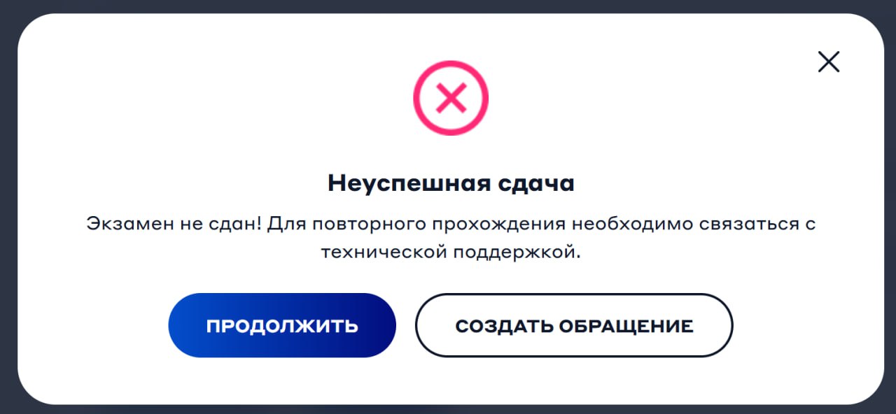 В случае неудачи: Для сброса состояния экзамена направьте обращение в службу поддержки.