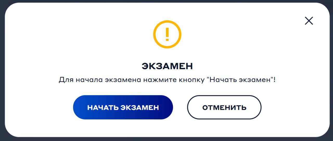 Перед прохождением финального тестирования появится всплывающее окно с кнопкой «Начать экзамен»