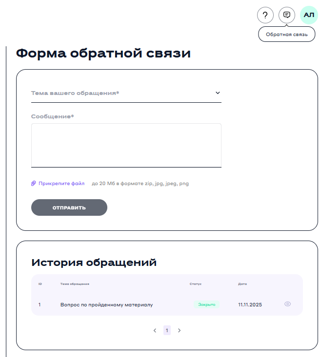 Иконка доступна на всех страницах платформы, поэтому вы можете обратиться к базе знаний в любой момент обучения.