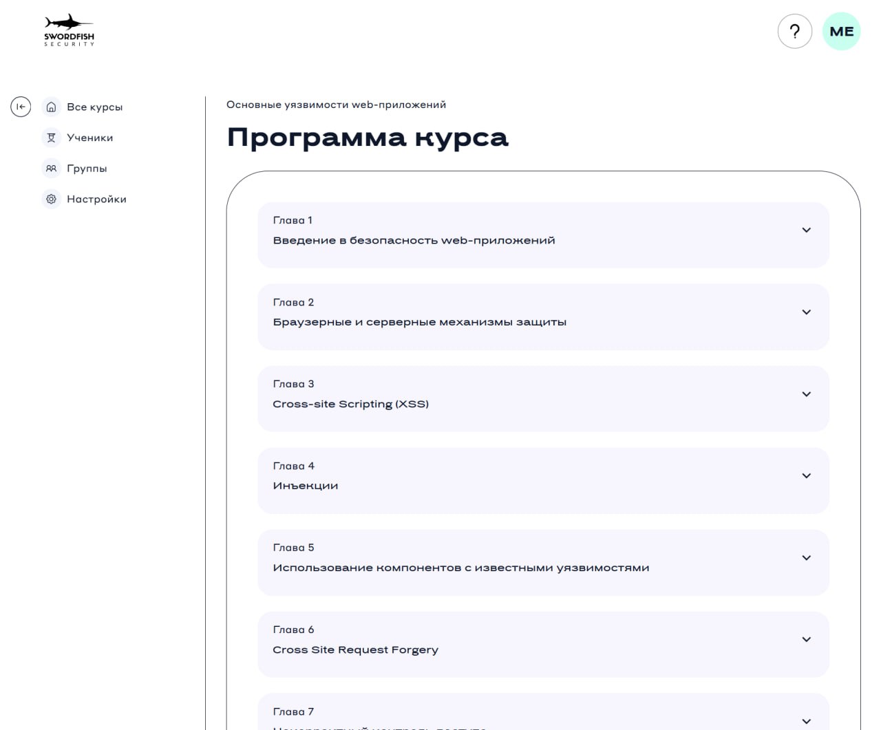 - В программе курса нажмите на любую главу/тему